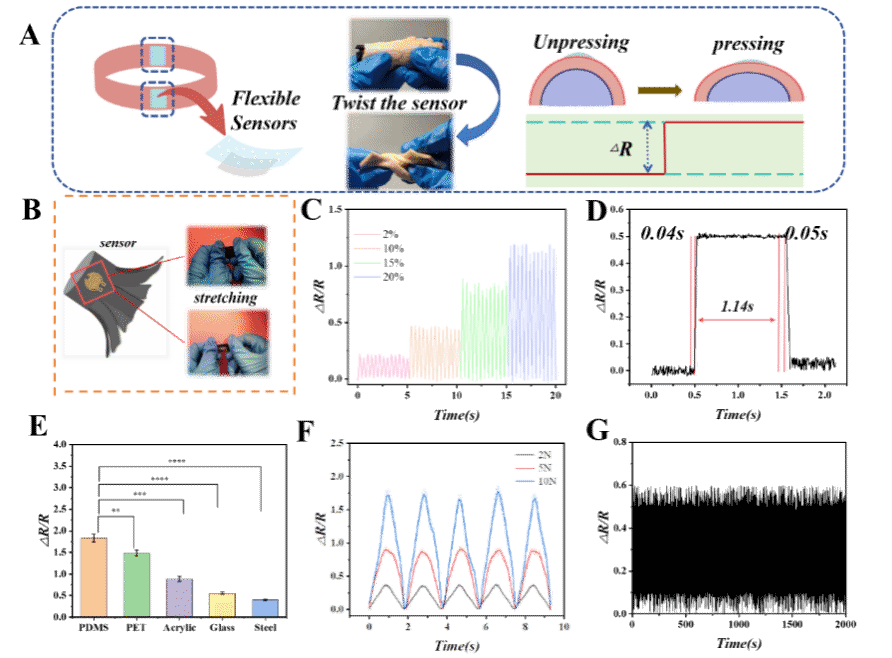 图 1该水凝胶支架集成了一种多通道柔性电阻型传感器系统,具备对复杂机械形变的高灵敏感知能力。
